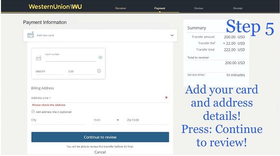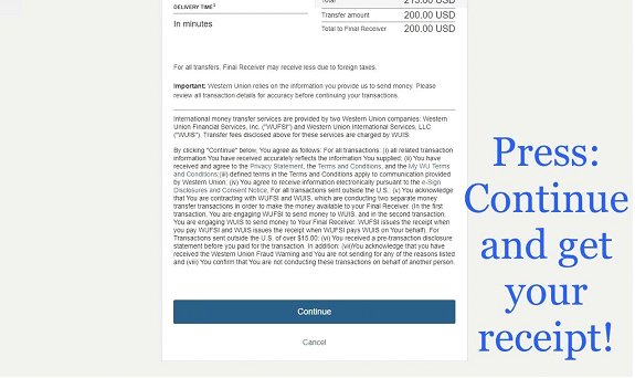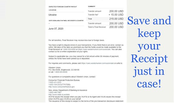 4. Western Union don’t allow transfers for paying goods and services. Please make sure to answer that you’re sending the money to a friend and that you know her/him personally, do not specify that you’re paying for goods because business transactions are not allowed on Western Union and this can lead to a block/cancellation of your transfer.